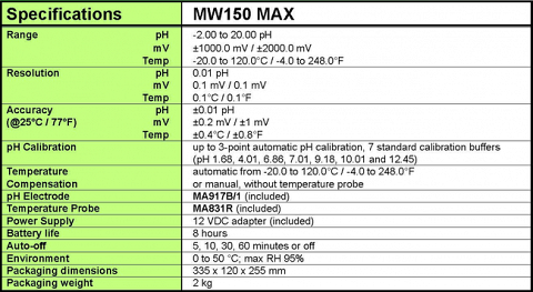 • Milwaukee MW150 MAX, pH / ORP / Lämpötila Laboratoriopöytämittari