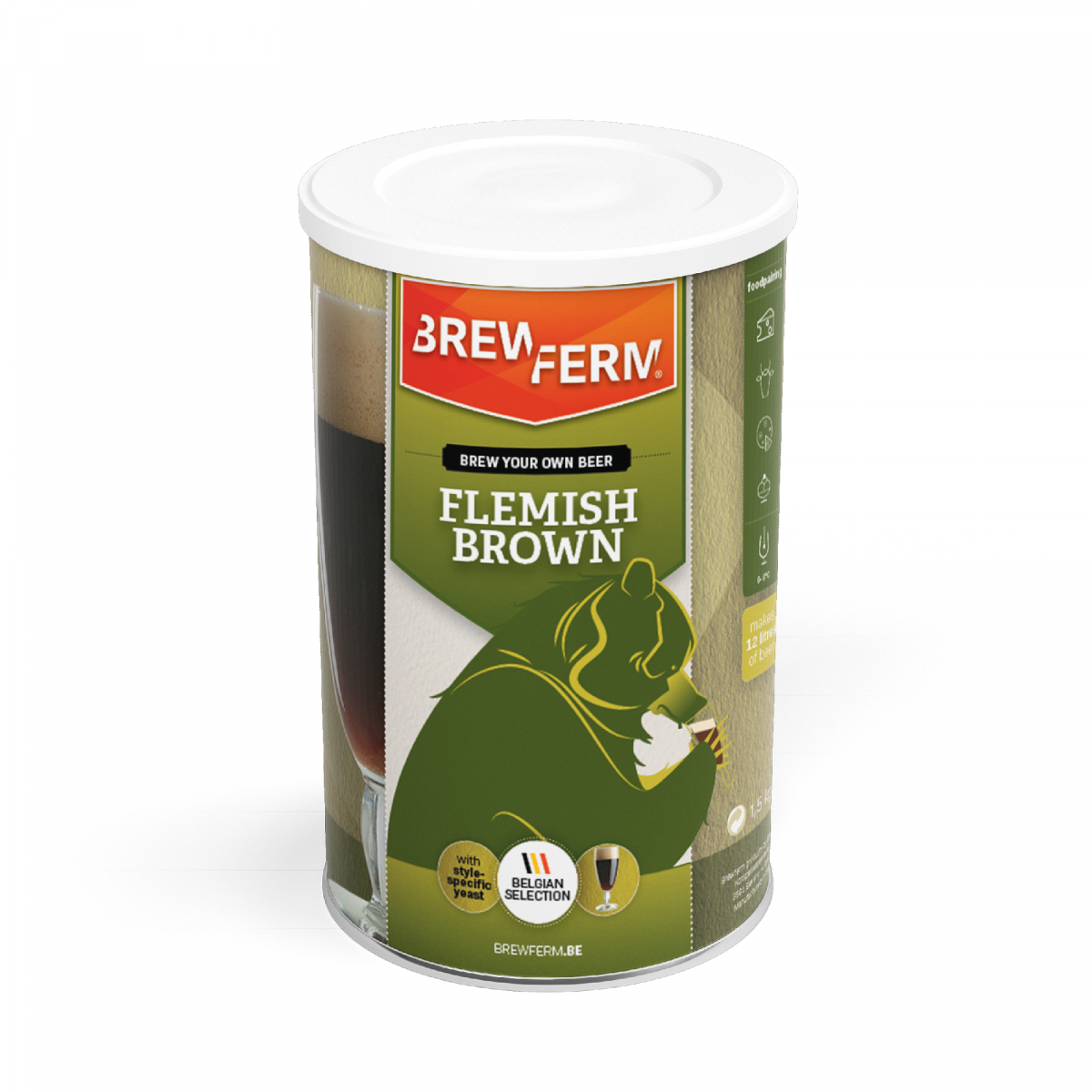 Brewferm Flemish Brown. Erittäin aromaattinen tummanruskea olut, jossa on lakritsin sävyjä ja keskimääräinen alkoholipitoisuus.