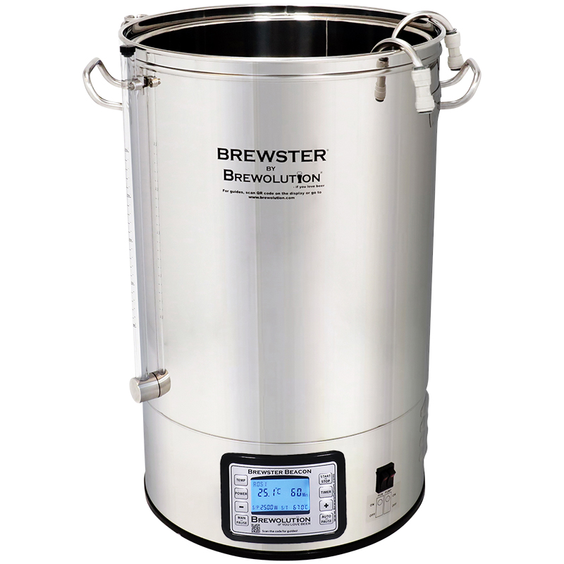 Uudistettu malli Brewster Beaconista tanskalaiselta Brewolutionilta. Oluenvalmistuslaitteistolla voit valmistaa 12,5 – 35l olutta kerralla. Saman tehtaan tuotoksia kuin Brew Monk. Uudistetussa mallissa monia parannuksia, kuten käännetty LCD näyttö, teleskooppi ylivuotoputki sekä tukevampi rakenne mallaspiipussa ja suodatinlevyissä. 2v tehdastakuu. Jäähdytin ei sisälly hintaan.