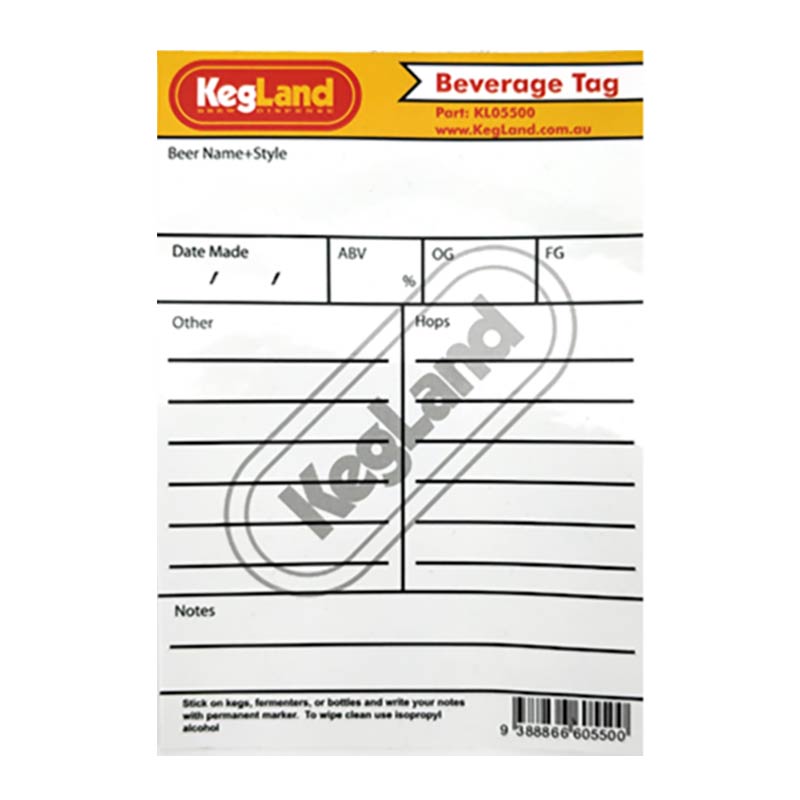 Kegland Beverage Tag – uudelleenkäytettävä etiketti kegeihin ja käymisastioihin