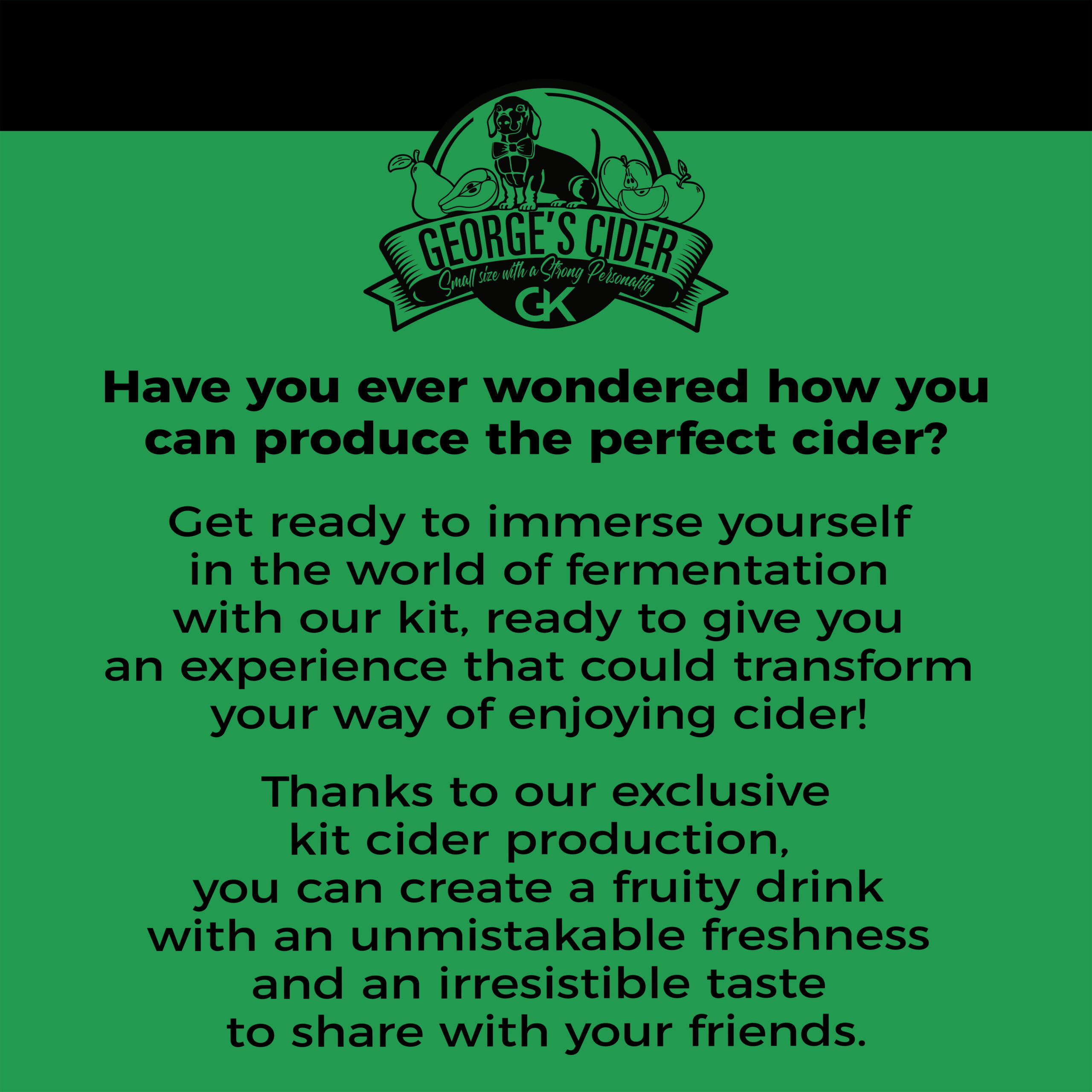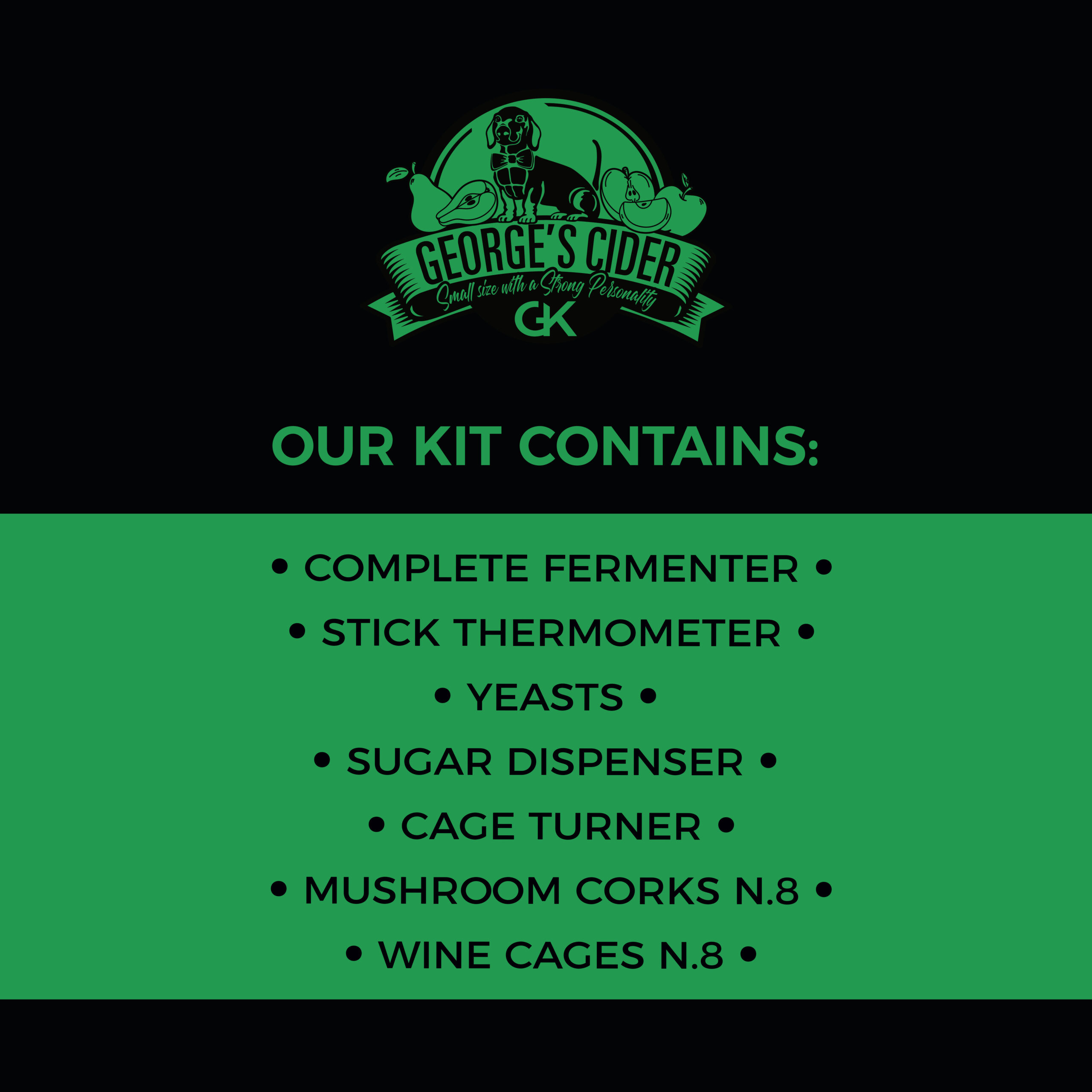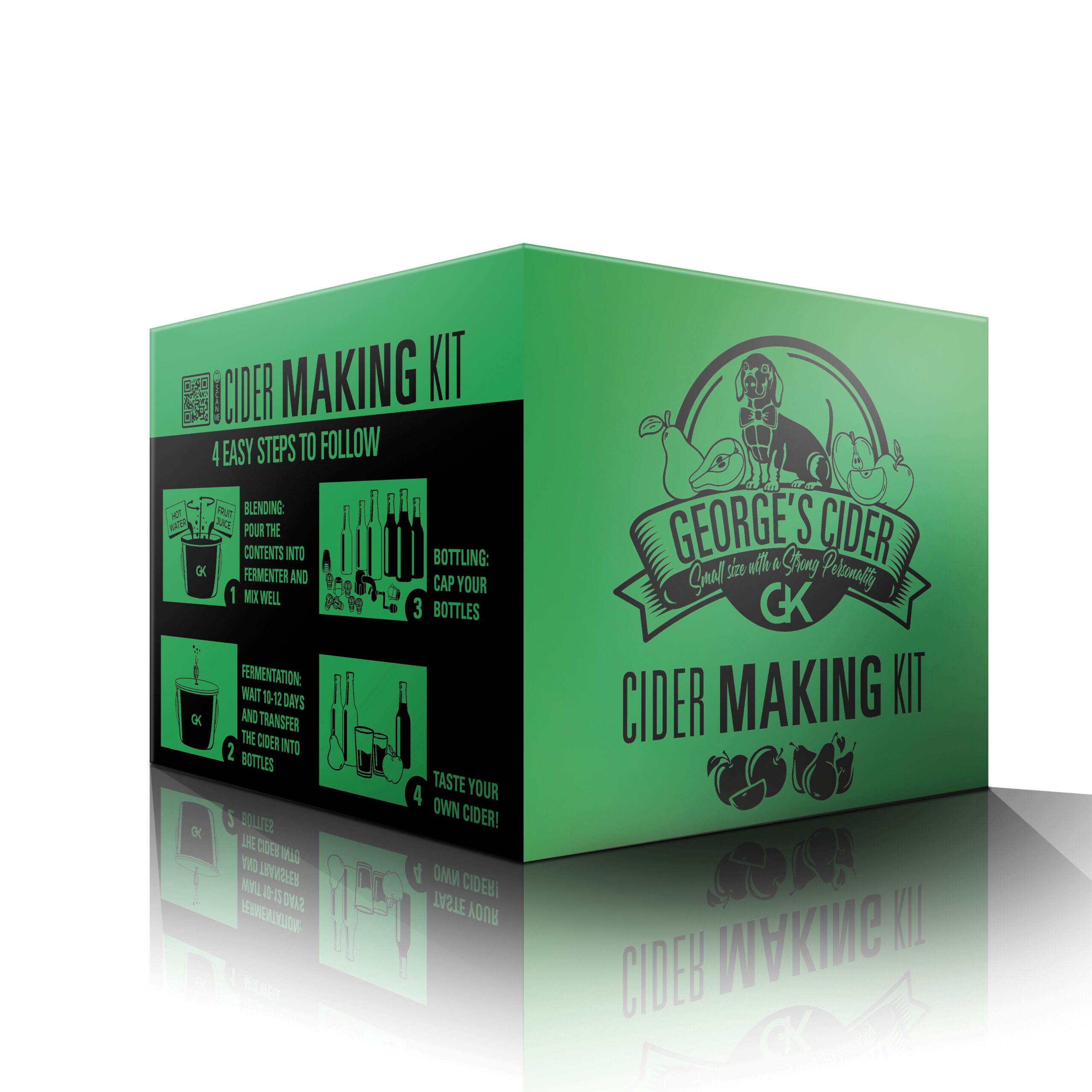 George’s Cider -pakkauksemme ansiosta voit uppoutua siiderin valmistamisen maailmaan ja valmistaa 5 litraa parasta laatua olevaa siideriä 4 yksinkertaisessa vaiheessa!
