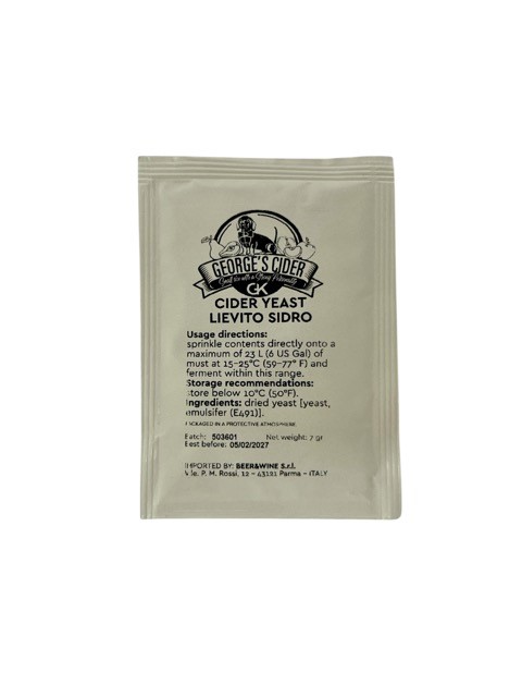 Italialaisen George´s valmistuttama siiderille suunniteltu hiiva, joka korostaa hedelmäisiä aromia. Sopii käytettäväksi George´s Cider making Kitin kanssa.