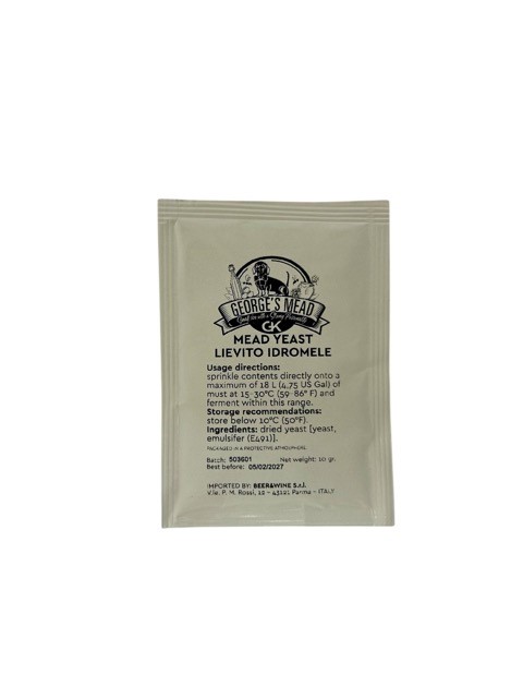 Italialaisen George´s valmistuttama meadille suunniteltu hiiva, joka tuo raikkautta ja kukkaisia sävyjä. Sopii käytettäväksi George´s Mead making Kitin kanssa.