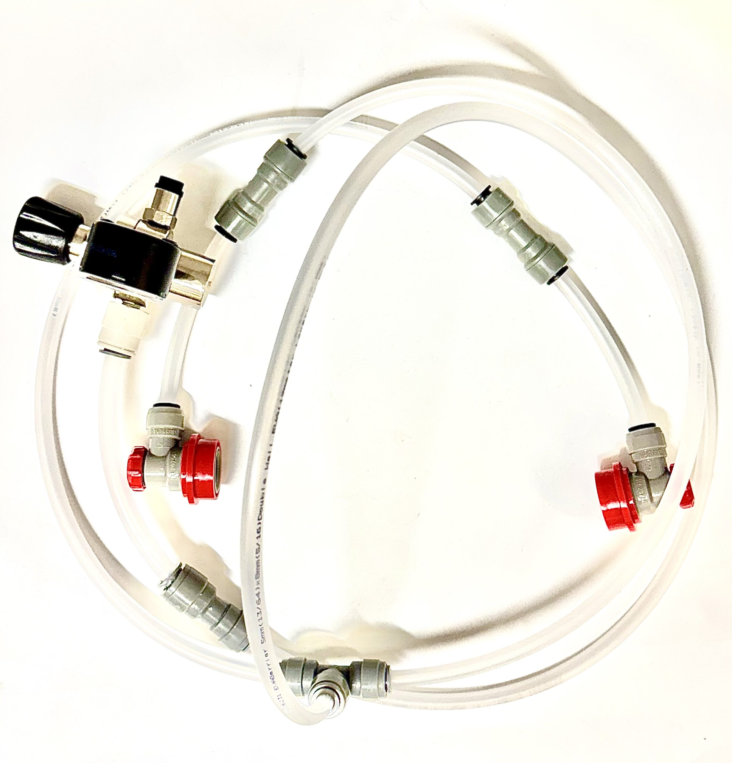 Prosetti hiilihapotukseen sodastream-pullolle ja kahdelle kegille takaiskuventtiilein. Letkut on valmiiksi mitoitettu pituuden ja paksuuden osalta sopiviksi.