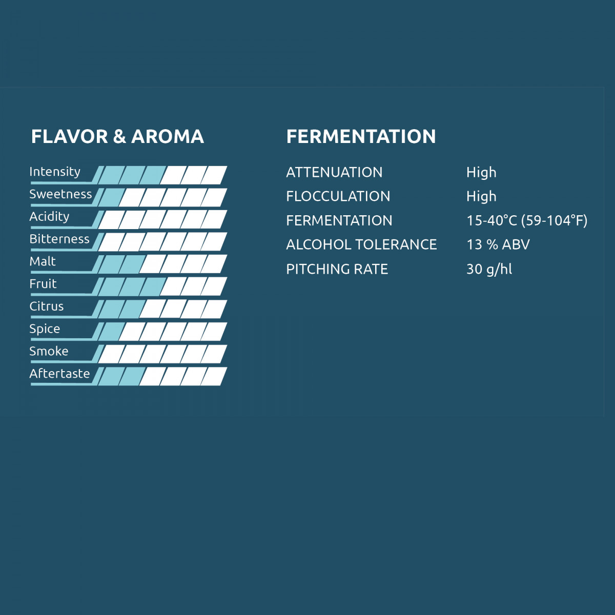 Suoraan vierteeseen ripottelemalla hiivaa pinnalle. Varmista, että vierteen lämpötila on yli 20 °C (68 °F). Annostus 5 g/20-30 l. Jos käytät alle 20 °C:ssa (68 °F) tai vahvaa vierrettä, nosta hiivaus 10 g/20 l.