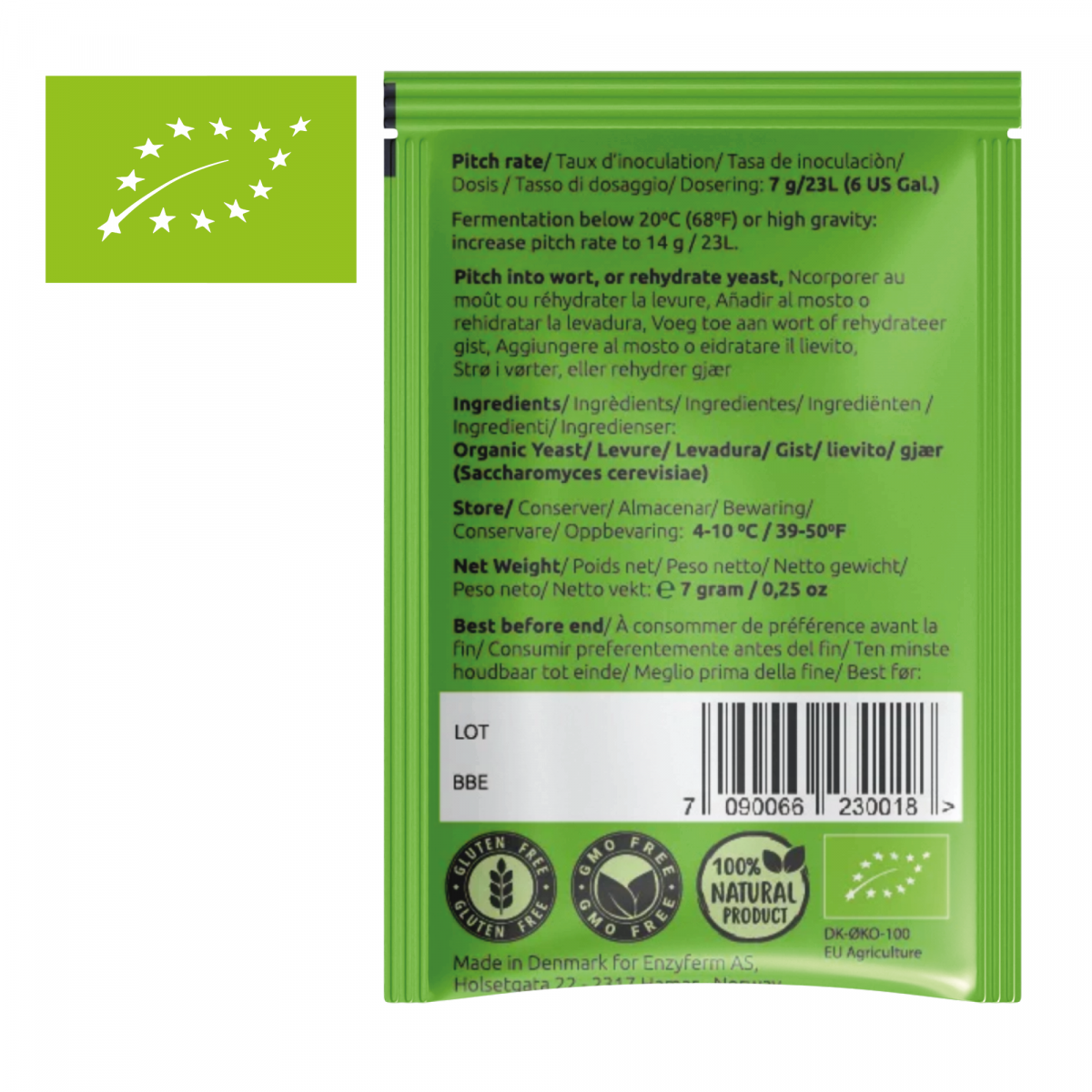 Fermentaatioalue: 18 – 38 °C (64 – 100 °F)