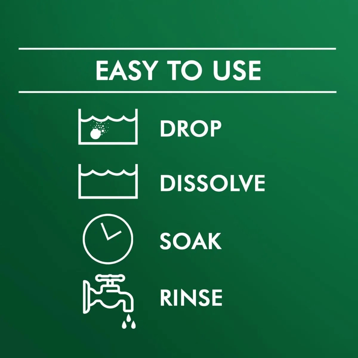Helppokäyttöinen – upota, anna vaikuttaa ja huuhtele puhtaaksi