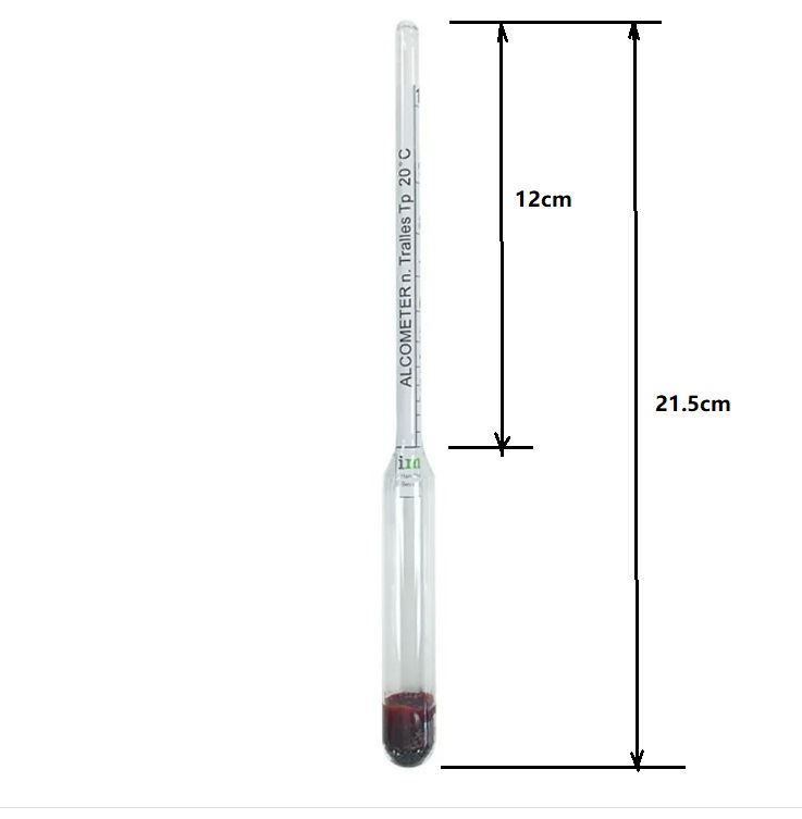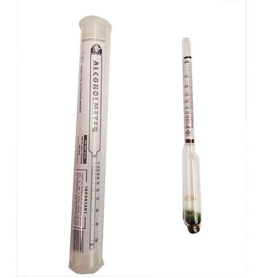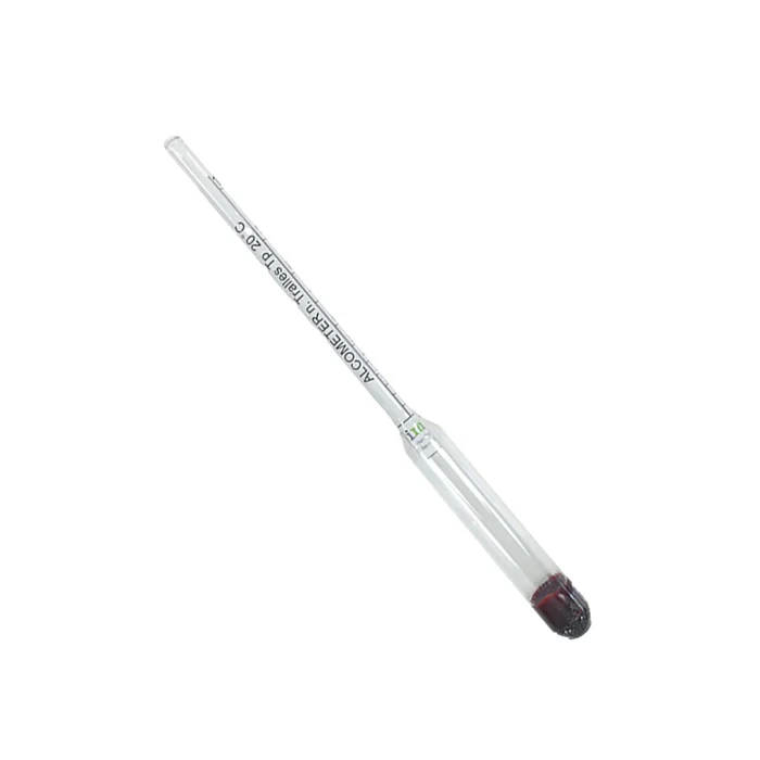 Kelluva alkoholimittari alkoholipitoisuuden mittaamiseen tislatuille alkoholijuomille asteikolla 0-100%. Tarkin lukema saadaan maustamattomilla ja väkevillä juomilla. Ei viinille tai oluelle.